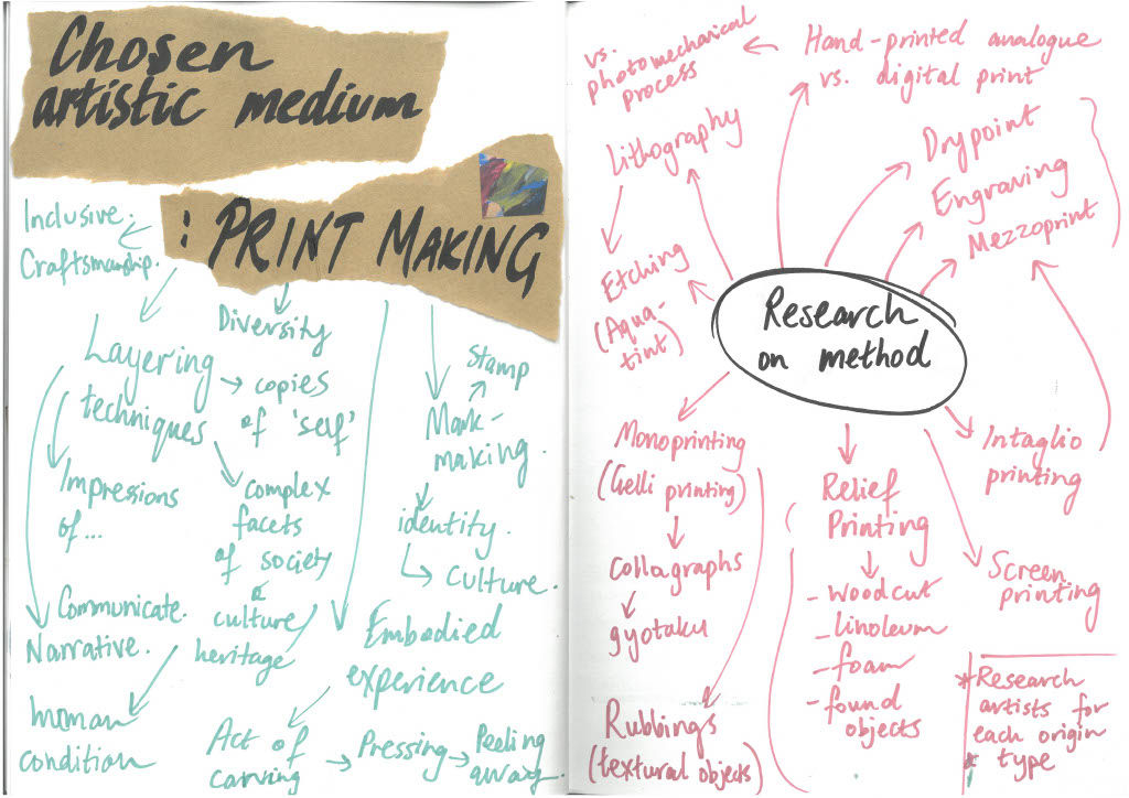 Connecting research on artists and medium to subject matter inspired by 8Ways concepts (eg. symbols, maps, reconstruct).